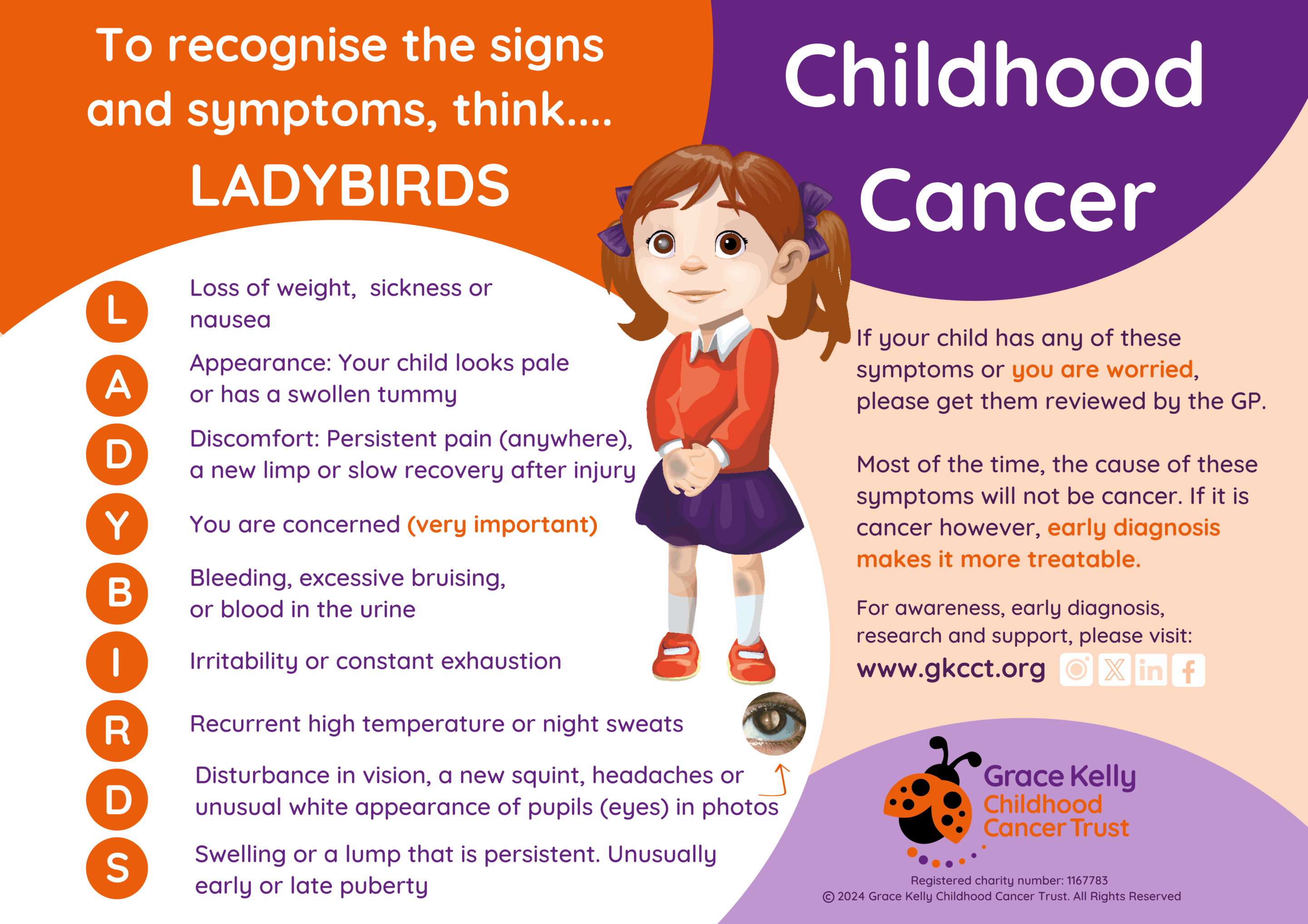 Parent awareness card 2024 Anne-Marie Dragomir | 24th September 2025 ← Return to Grace Kelly Childhood Cancer Trust endorses Jess’s Rule to work with GPs to improve early cancer detection ›