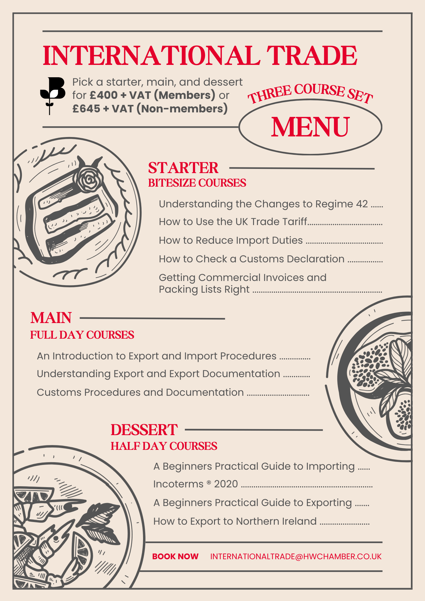 Participants can choose a starter, main, and dessert course, creating a comprehensive training package that blends introductory insights, in-depth knowledge, and practical application , all for a fixed, cost-effective price.
