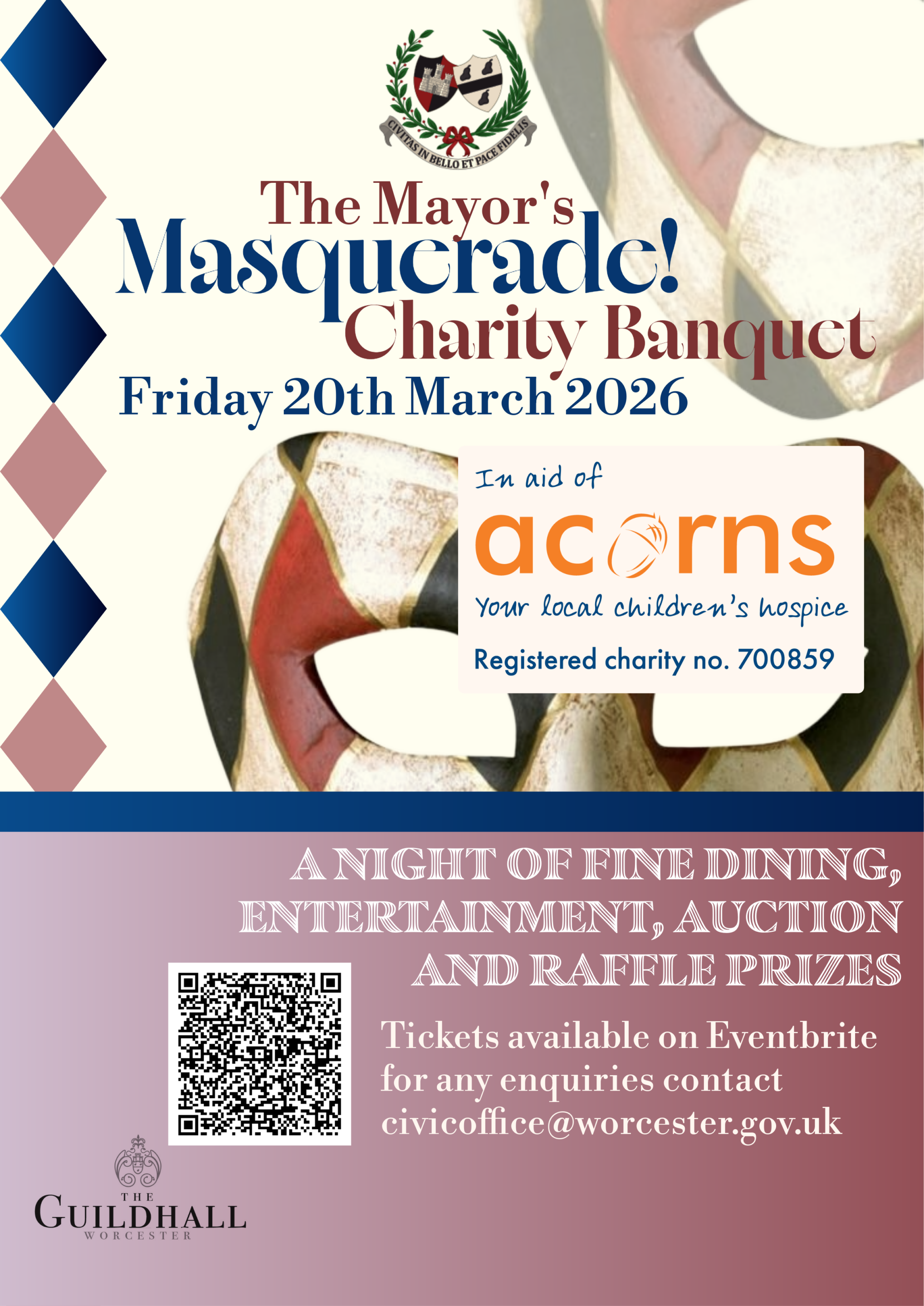 Mayor of Worcester’s Charity Banquet for Acorns Children’s Hospice – Fine dining, entertainment, raffle & auction prizes. 6.30pm to 11pm